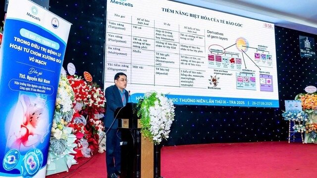 Tại phiên thứ nhất của hội nghị, ThS. Nguyễn Hải Nam – Viện trưởng Viện Nghiên cứu Ứng dụng Công nghệ Tế bào Mescells, đã có bài báo cáo về chủ đề “Tế bào gốc trung mô trong điều trị hoại tử chỏm xương đùi vô mạch”, cập nhật những thông tin chuyên sâu về ứng dụng tế bào gốc trung mô điều trị hoại tử chỏm xương đùi vô mạch tại Việt Nam và trên thế giới.